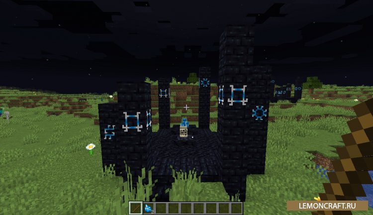 Подойдите к алтарю, возьмите в руку палку (в инвентаре должны лежать лунные камни), кликните ПКМ по центральному блоку алтаря, вы получите посох, который пригодится для активации портала. Теперь вместо палки, возьмите в руку камни пустоты, снова кликните ПКМ на блок алтаря, теперь вы получите блоки, которые станут основанием портала, остается только создать портал аналогичный порталу в нижний мир и активировать его посохом.